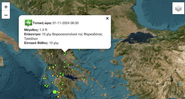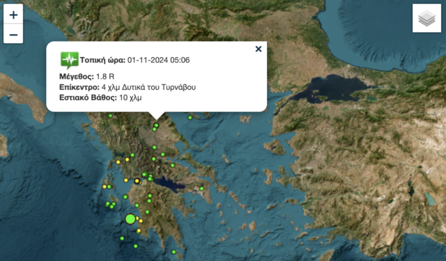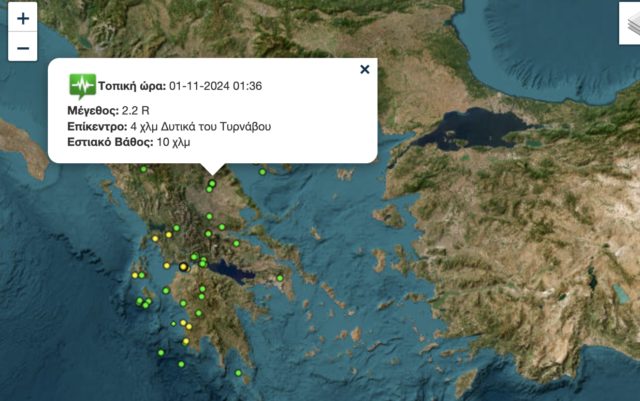 1:36 τα ξημερώματα σημειώθηκε δόνηση 2.2 βαθμών Ρίχτερ με επίκεντρο τα 4 χλμ δυτικά του Τυρνάβου και εστιακό βάθος 10 χλμ, άλλη μία στις 5:06 την αυγή 1.8 Ρίχτερ  4.6 χλμ δυτικά του Τυρνάβου με εστιακό βάθος 10 χλμ και τέλος στις 6:30 το πρωί 1.5 Ρίχτερ βορειοανατολικά της Φαρκαδόνας με εστιακό βάθος 10 χλμ.