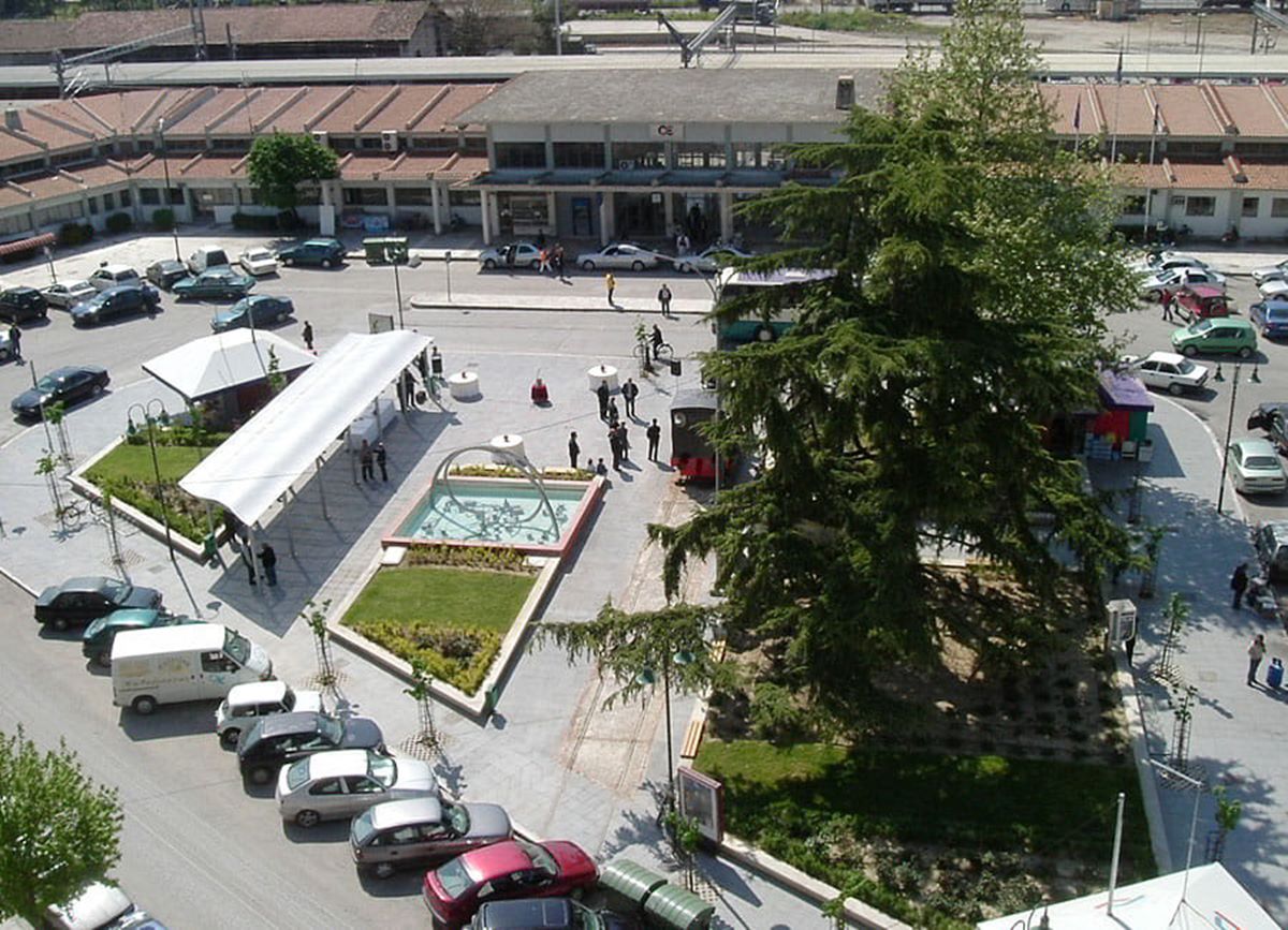 (Στη φωτογραφία η πλατεία ΟΣΕ, κάτω από την οποία βρίσκεται το ένα από τα τέσσερα καταφύγια)».