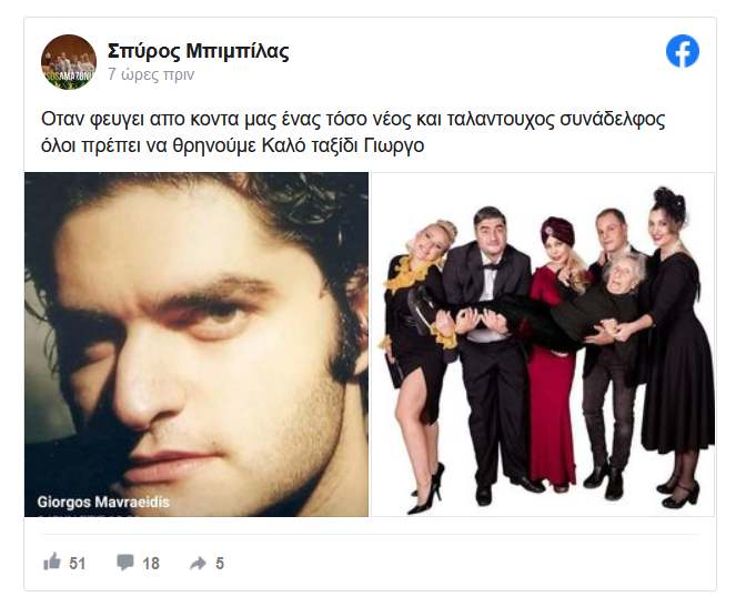 «Όταν φεύγει από κοντά μας ένας τόσο νέος και ταλαντούχος συνάδελφος όλοι πρέπει να θρηνούμε Καλό ταξίδι Γιώργο».