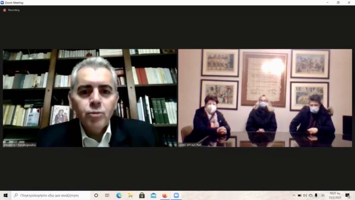 Την ένταξη όλων των εργαζόμενων των νοσοκομείων στα Βαρέα και Ανθυγιεινά Επαγγέλματα έθεσαν, μέσω τηλεδιάσκεψης, στον βουλευτή Λαρίσης της Νέας Δημοκρατίας κ. Μάξιμο Χαρακόπουλο η πρόεδρος της ΔΑΚΕ εργαζομένων του Γενικού Νοσοκομείου Λάρισας κ. Έφη Χύτα, ο αντιπρόεδρος κ. Χρήστος Μπιτούλας και η εργαζόμενη διοικητική υπάλληλος κ. Γιούλα Σδάνη. Η διαδικτυακή επικοινωνία πραγματοποιήθηκε κατόπιν αιτήματος της ΔΑΚΕ με σκοπό να μην υπάρξει εξαίρεση της ένταξης στα Βαρέα και Ανθυγιεινά Επαγγέλματα των διοικητικών υπαλλήλων στα νοσοκομειακά ιδρύματα.