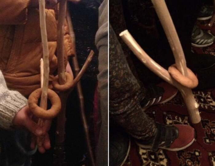 Ειδικότερα αυτές τις εορταστικές ημέρες τα παιδιά στη Ραψάνη πήγαιναν από σπίτι σε σπίτι κρατώντας το χαρακτηριστικό κλαδί με τη διχάλα για τα Κόλιντα (Κάλαντα)… Οι γυναίκες τους πρόσφεραν κ(ου)λούρες (τα κουλουράκια της εικόνας), συκομαΐδες (ξερά σύκα), ξυλοκέρατα (χαρούπια), κουκόσιες (καρύδια), βρασμένο καλαμπόκι και άλλα πολλά…