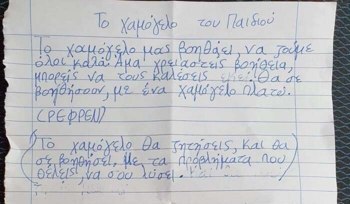 Το ποίημα το έδωσαν σε έναν από τους τους διασώστες του «Χαμόγελου του Παιδιού» χαρίζοντας μία νότα αισιοδοξίας κι ένα χαμόγελο πλατύ σε όλους…