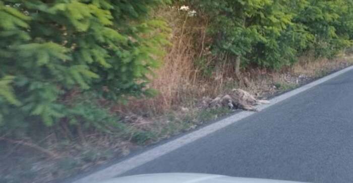Η οδηγός δεν μπορούσε αρχικά να ξεχωρίσει αν ήτα σκυλί ή λύκος, αλλά πλησιάζοντας στο σημείο διαπίστωσε ότι ήταν ένας σκοτωμένος μεγάλος λύκος στην άκρη του δρόμου.