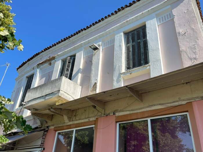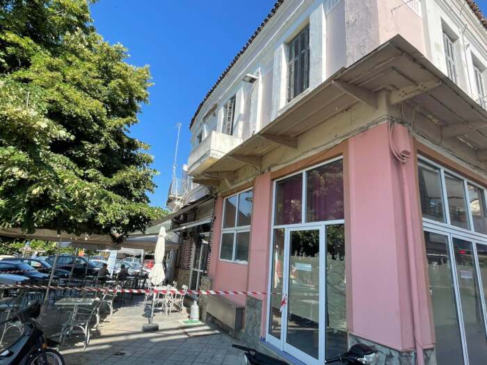 Ένα κομμάτι σκέπαστρου-μαρκίζας από ένα παλιό κτίριο κατέρρευσε και έπεσε στο έδαφος από ύψος περίπου 5 μέτρων αφήνοντας κουρνιαχτό και έναν δυνατό θόρυβο. Ευτυχώς δεν υπήρξε κάποιος τραυματισμός.