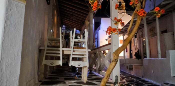 Πλέον, με την απαγόρευση της κυκλοφορίας να ξεκινά από τη 01:00 μετά τα μεσάνυχτα και να τελειώνει στις 06:00 το πρωί η κοσμοπολίτικη Μύκονος θυμίζει ένα άλλο νησί. Τα πολυσύχναστα σοκάκια του νησιού είναι άδεια τη νύχτα, ενώ η διασκέδαση πλέον γίνεται στα… βουβά μετά και την απαγόρευση της μουσικής.