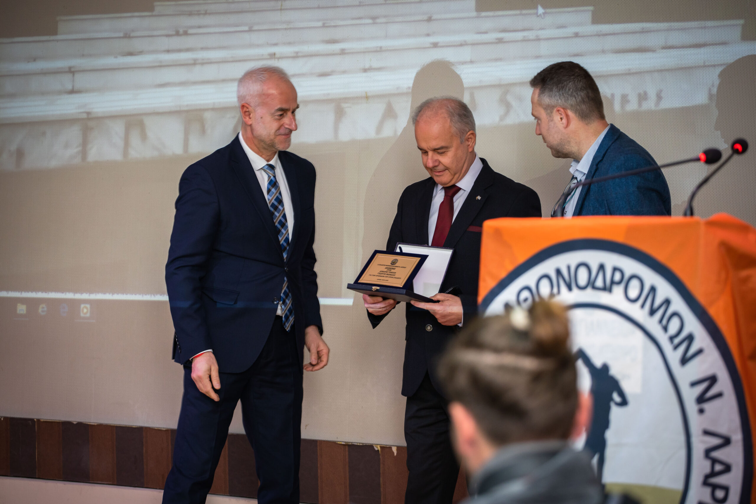 «Ευχαριστώ θερμά τον Σύλλογο Μαραθωνοδρόμων Νομού Λάρισας για την τιμητική πρόσκληση και τη βράβευση. Ο Σύλλογος αποτελεί έναν ζωντανό φορέα προώθησης του αθλητισμού, της ευγενούς άμιλλας και του “ευ αγωνίζεσθαι”. Αυτές οι αρχές μας εμπνέουν ως Δήμος να στεκόμαστε αρωγοί σε δράσεις που αναδεικνύουν τη σημασία του αθλητισμού για την κοινωνία. Ευχαριστώ ιδιαίτερα τον Πρόεδρο, κ. Απόστολο Γούλα, τα μέλη του Συλλόγου και τους ακούραστους εθελοντές που δίνουν ψυχή στις εκδηλώσεις αυτές.
