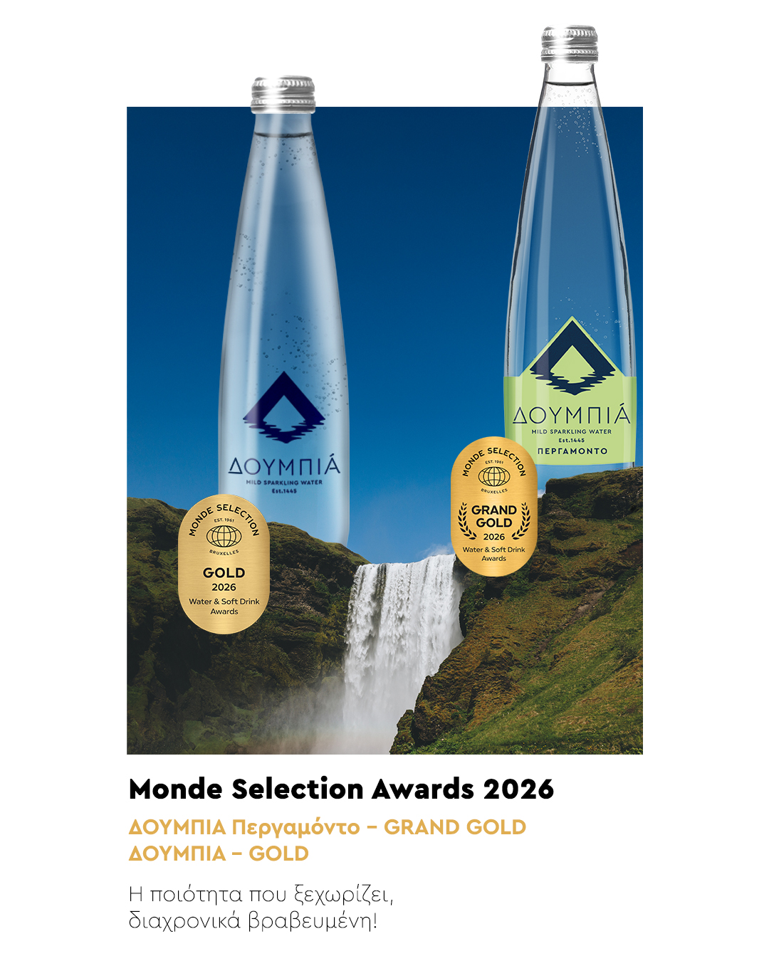 Βραβείο Grand Gold για το ΔΟΥΜΠΙΑ Περγαμόντο και Gold για το ανθρακούχο φυσικό μεταλλικό νερό ΔΟΥΜΠΙΑ στα Quality Awards 2026 της Monde Selection