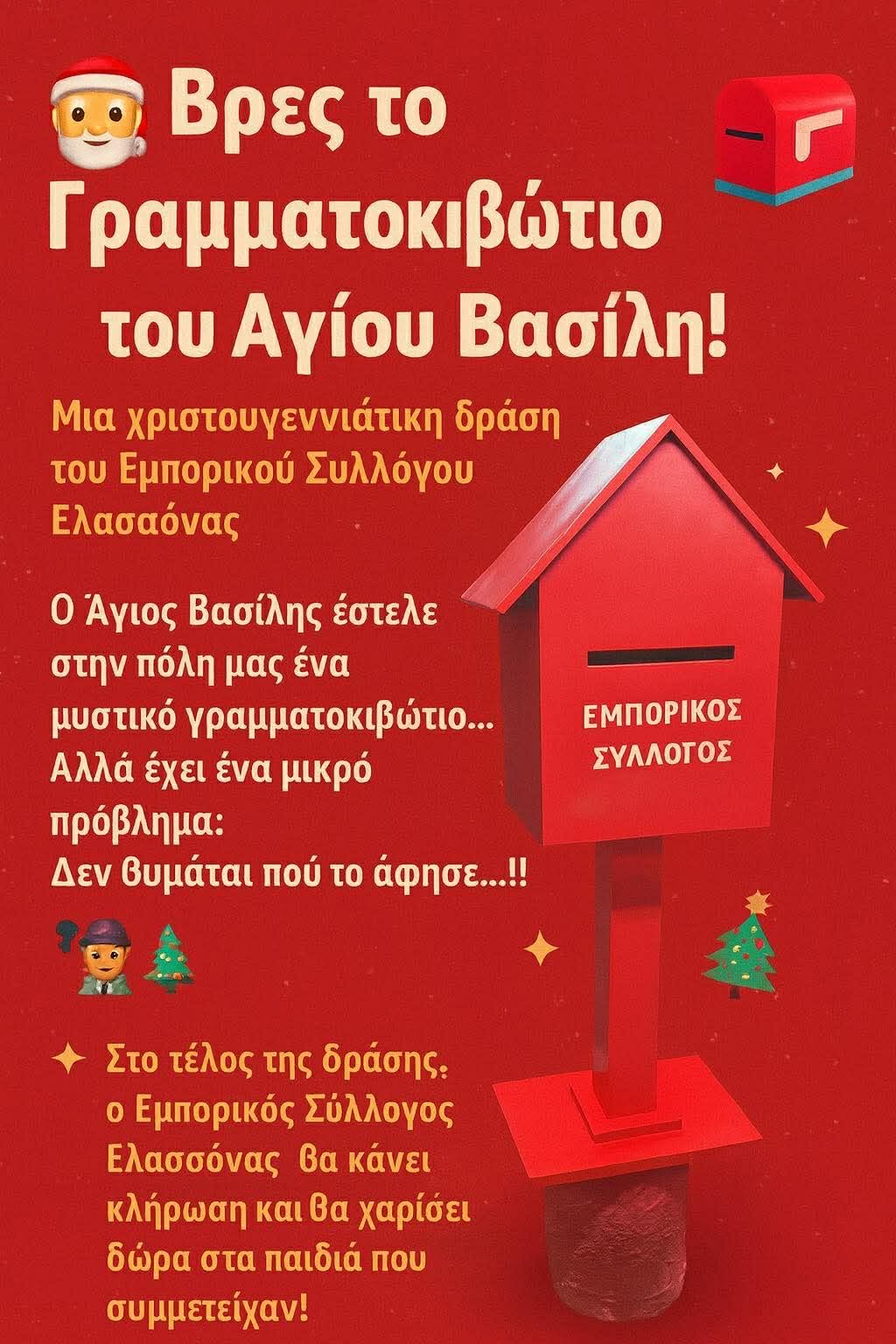 Βρες το Γραμματοκιβώτιο του Άγιου Βασίλη! Μια γιορτινή δράση του Εμπορικού Συλλόγου Ελασσόνας