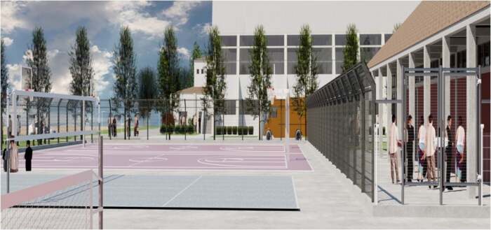 Στα γήπεδα καλαθοσφαίρισης, πετοσφαίρισης και αντισφαίρισης οι εργασίες αφορούν στην ανακατασκευή αθλητικού δαπέδου, στην εγκατάσταση δικτύου φωτισμού κ.λπ., ενώ το γήπεδο ποδοσφαίρου θα ανακατασκευαστεί πλήρως σε μικρότερες διαστάσεις ώστε να προστεθούν περιμετρικά διάδρομοι στίβου, σκάμμα για άλμα εις μήκος, βαλβίδα σφαιροβολίας κ.λπ.