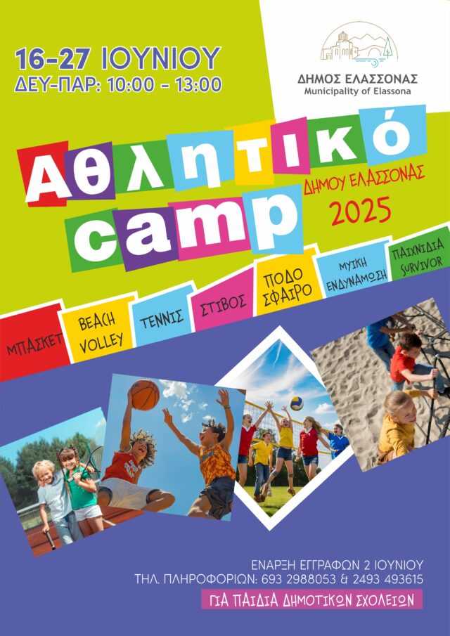 Το Καλοκαιρινό Αθλητικό Camp του Δήμου Ελασσόνας επιστρέφει για τρίτη συνεχόμενη χρονιά, προσφέροντας μια αξέχαστη εμπειρία γεμάτη παιχνίδι, μάθηση και άθληση για τα παιδιά του δημοτικού.