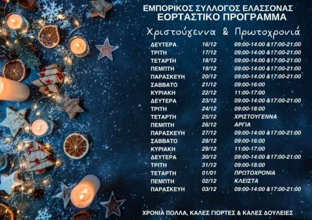 Ξεκινάει σήμερα το εορταστικό ωράριο στην αγορά της Ελασσόνας – Δείτε τα ωράρια
