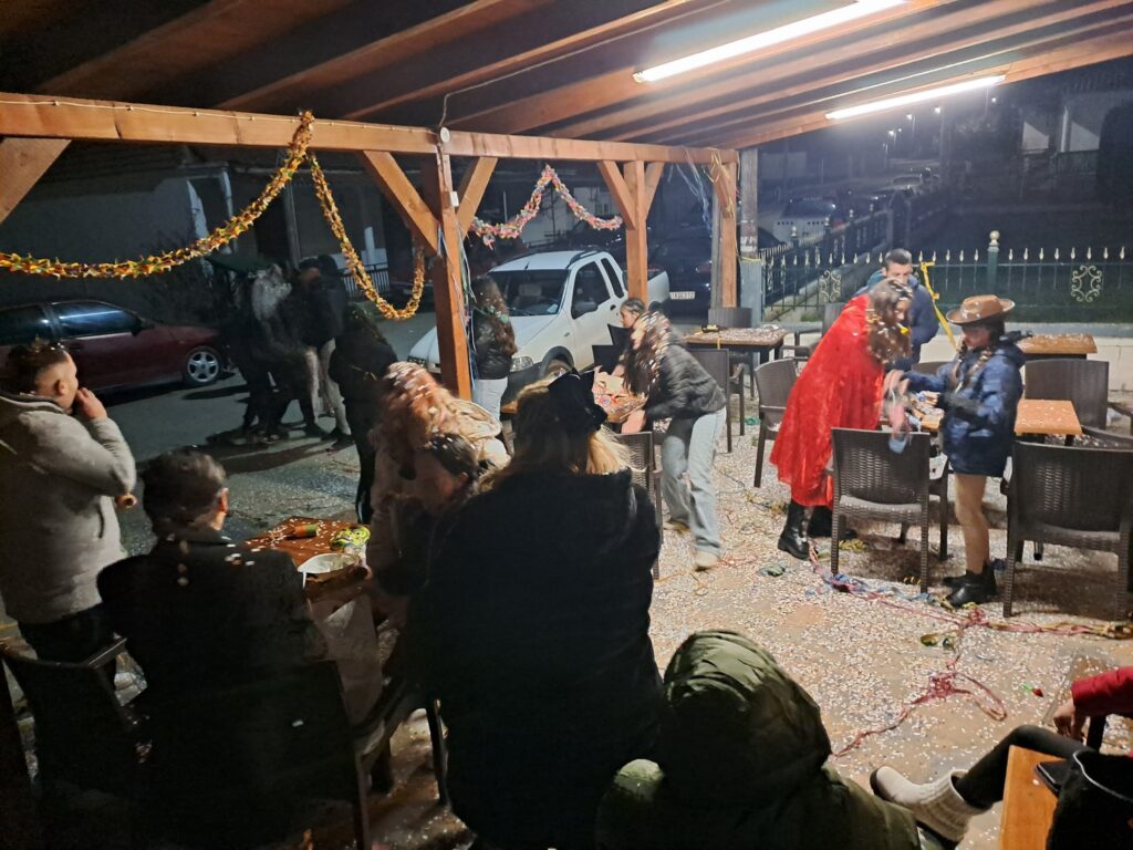 Στη συνέχεια η διασκέδαση μεταφέρθηκε στο μασκέ πάρτι σε καφε σε ένα ξέφρενο γλέντι με αμείωτο ρυθμό, που κράτησε μέχρι το πρωί, την ώρα που τα ξύλα άναβαν και τα καζάνια έπαιρναν την θέση τους στις πυροστιές για την φασολάδα.