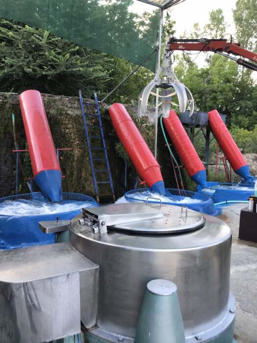 Κουβέρτες παπλώματα φλοκάτες πλένονται σε παραδοσιακή δριστέλα ύψους 5 μέτρων