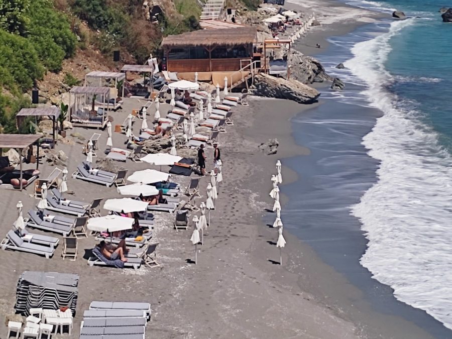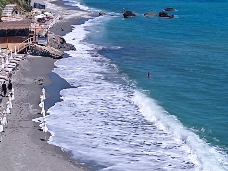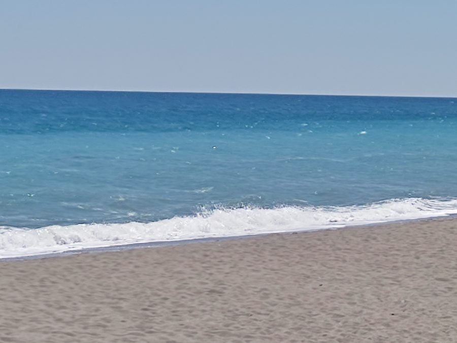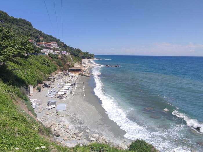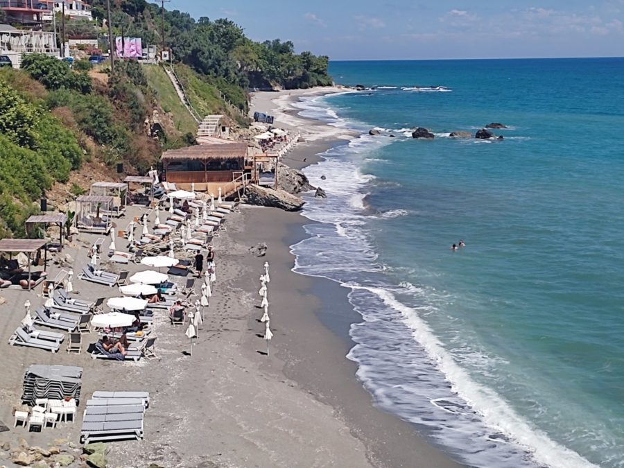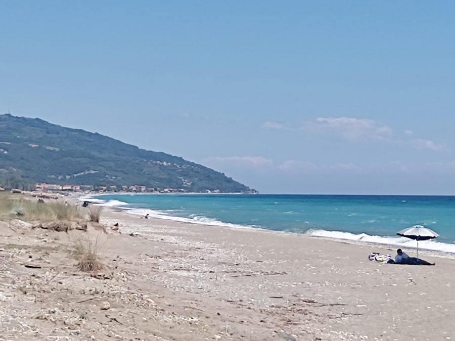 Στην παραλία της Βελίκας η θάλασσα έχει “σηκώσει” κύμα, με το αεράκι που φυσάει να είναι σχετικά δροσερό.