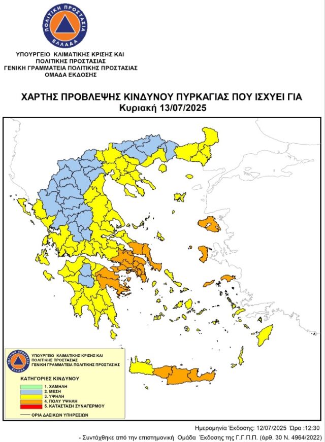 Υψηλός κίνδυνος πυρκαγιάς σήμερα Κυριακή 13/7 σε όλο το Δήμο Ελασσόνας